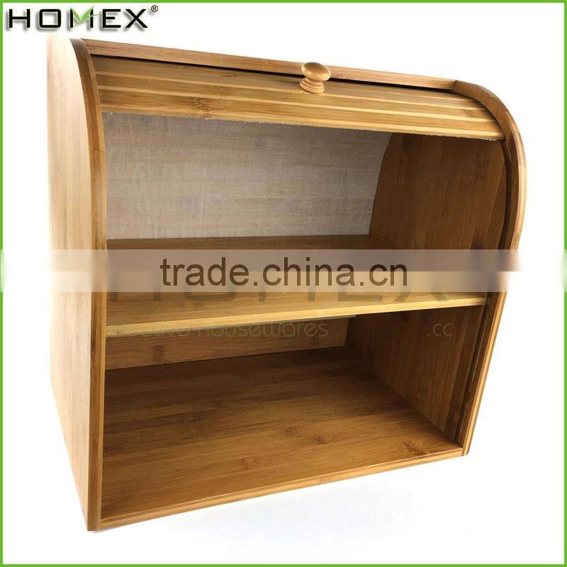 Bamboo bread display cabinet/ double bread box Homex-BSCI