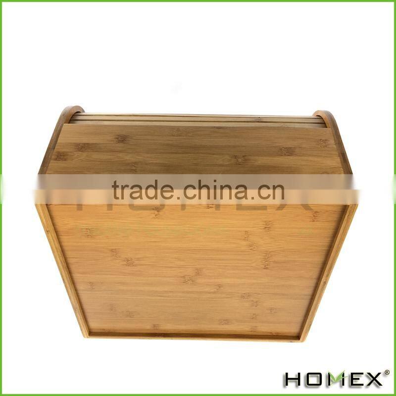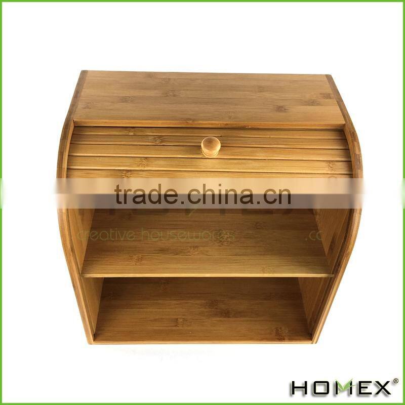Bamboo kitchen double bread box /rolltop bread holder Homex-BSCI