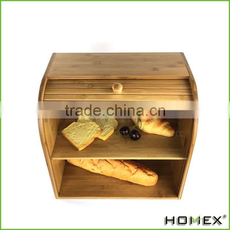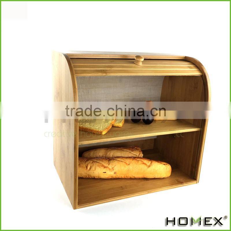 Bamboo double decker bread bin vintage bread box Homex BSCI/Factory