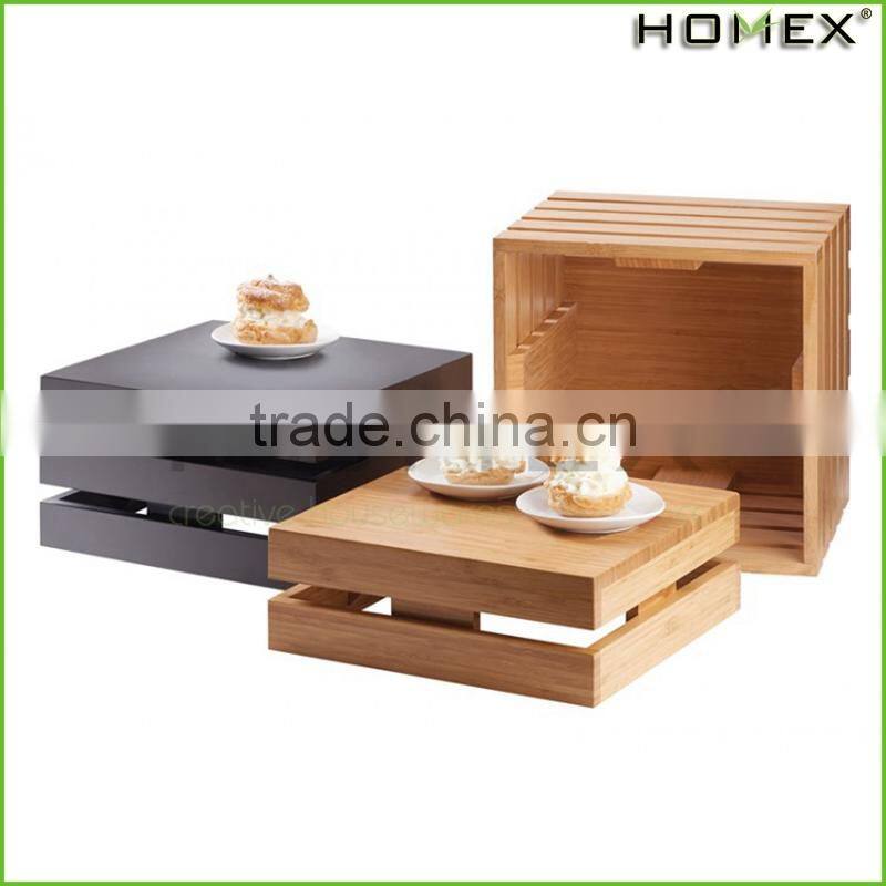 Bamboo Food Square Crate Riser Food Display Rack Homex BSCI/Factory