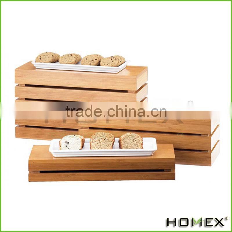 Bamboo Cube Rectangle Risers Food Display Rack Homex BSCI/Factory