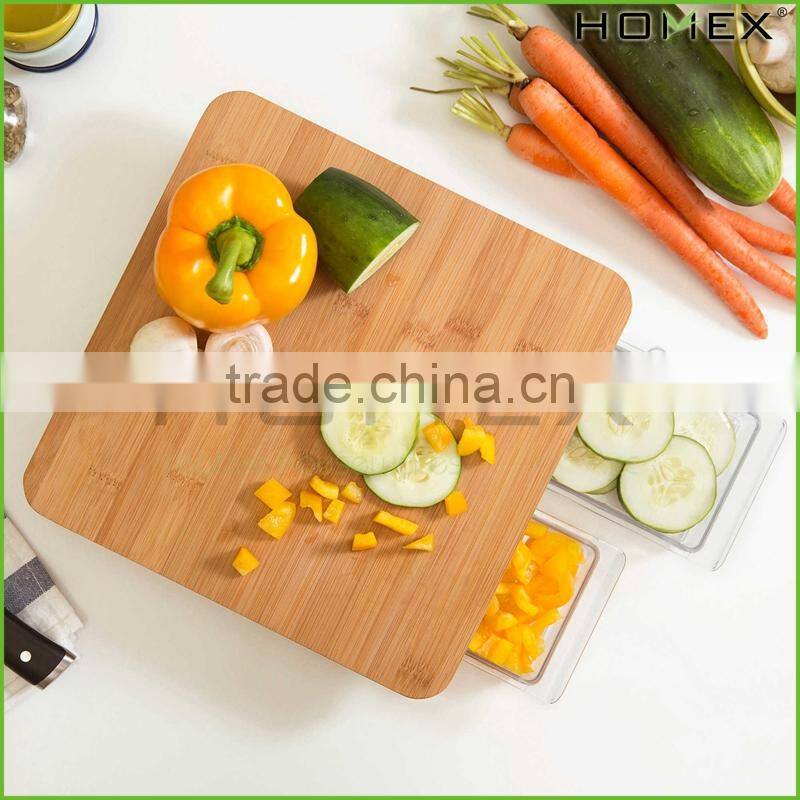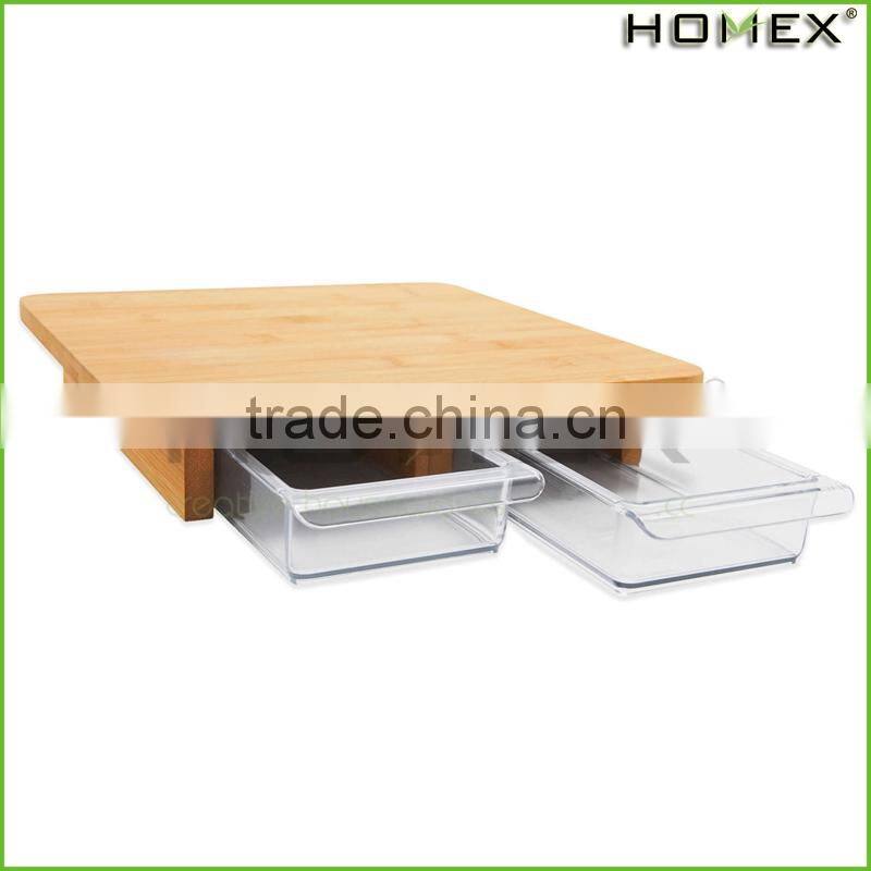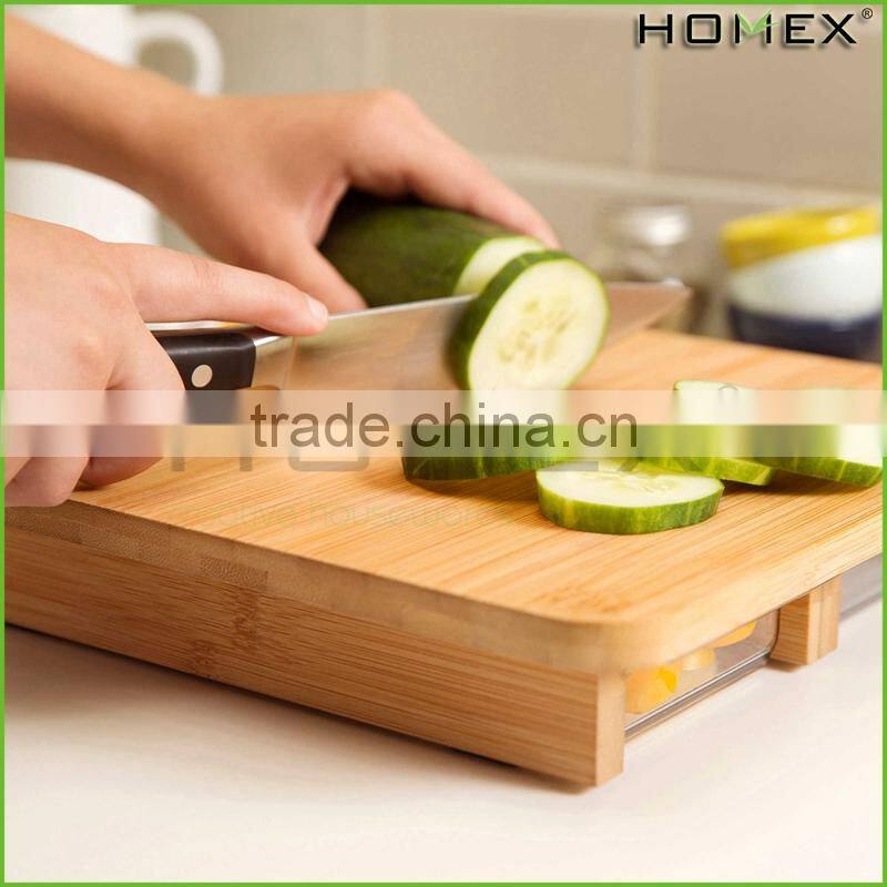Bamboo cutting board fruit cutting board w 2 drawers Homex_BSCI Factory
