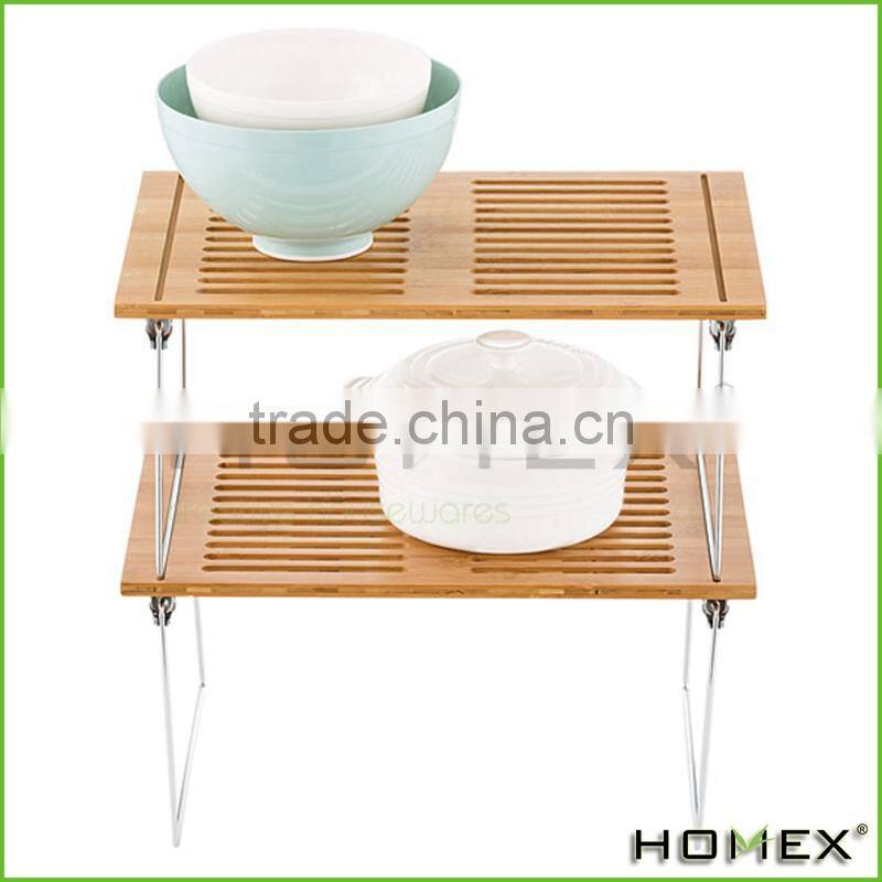 Bamboo kichen storage rack dish rack with metal Homex-BSCI Factory