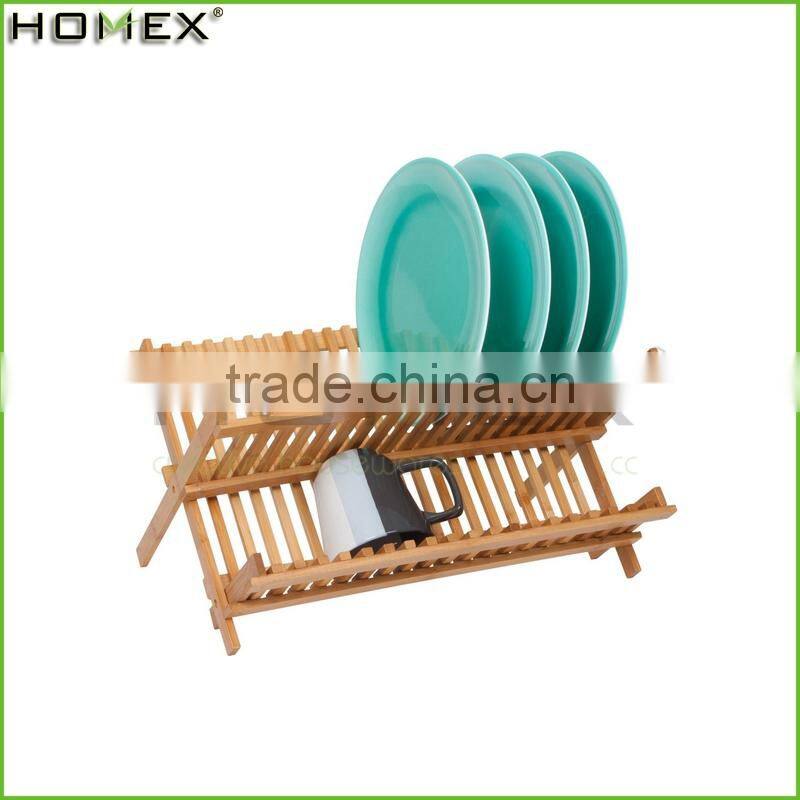 Hot Sale Kitchenware 2 Tier Bamboo Decorative Folding Dish Rack/Homex_Factory