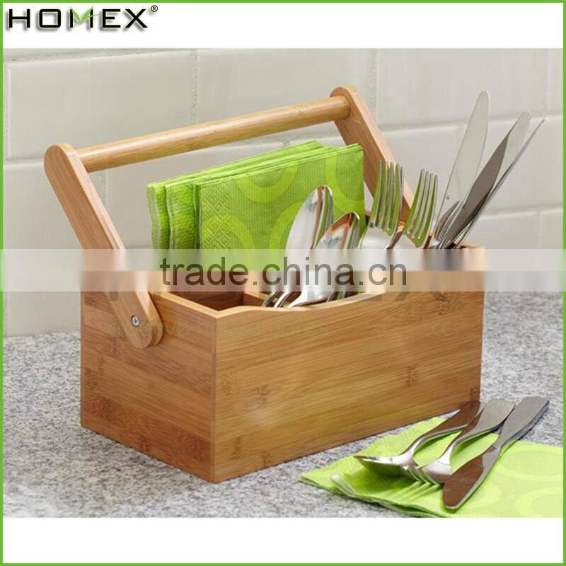 High Quality Bamboo Kitchen Cutlery Caddy for Restaurant/Homex_Factory