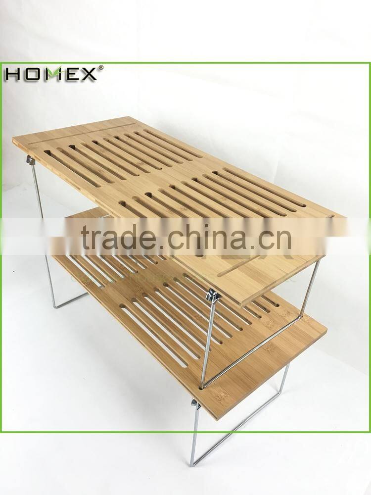 Easy to Storage Bamboo Dish Drying Rack/Folding Plate Drainer Tray/Homex_FSC/BSCI Factory