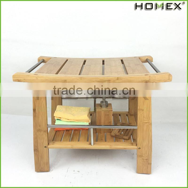 Bamboo Shower Seat with Shelf Shower Bench Homex BSCI/Factory