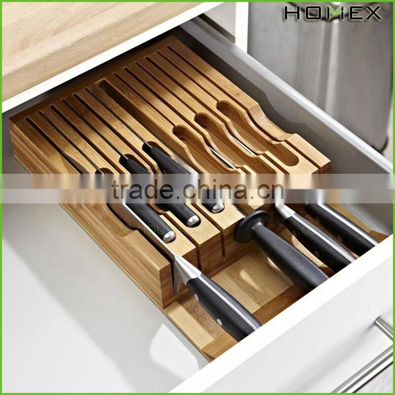 Bamboo In-drawer Knife Holder for 13 Knives Homex-BSCI Factory