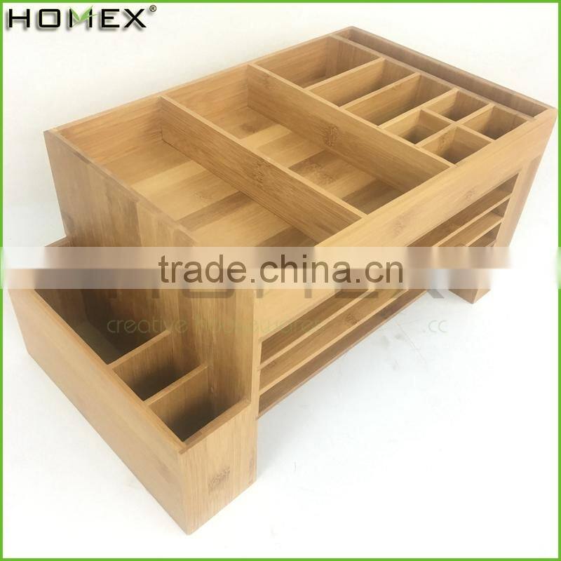 Bamboo desk organizer for office stationery