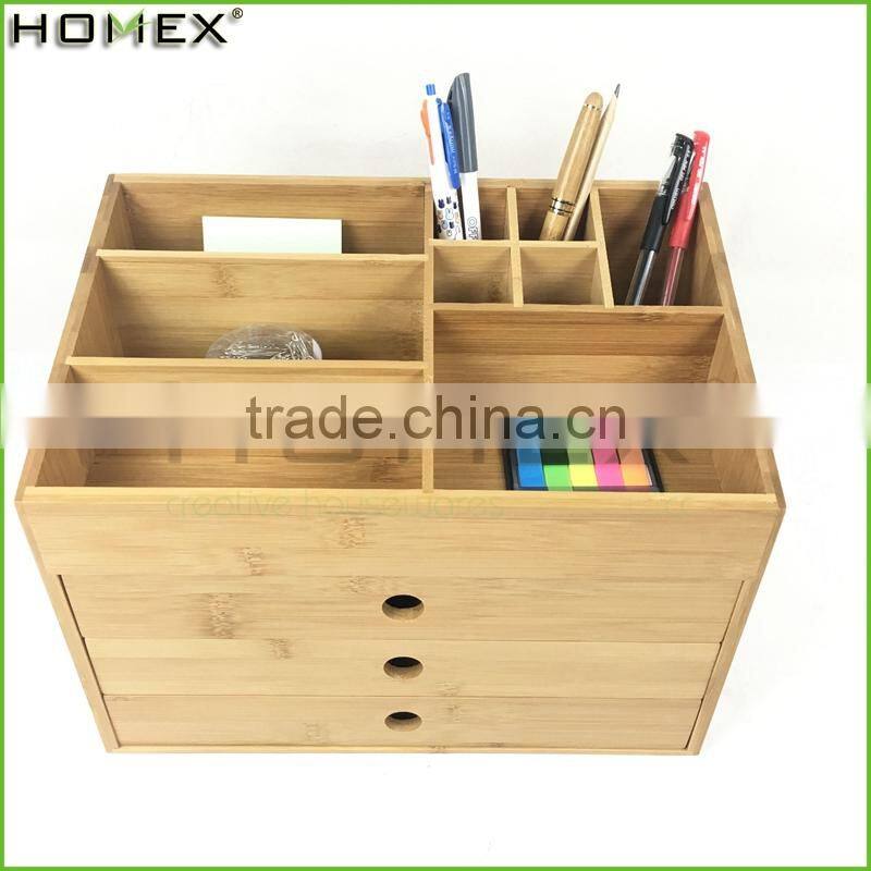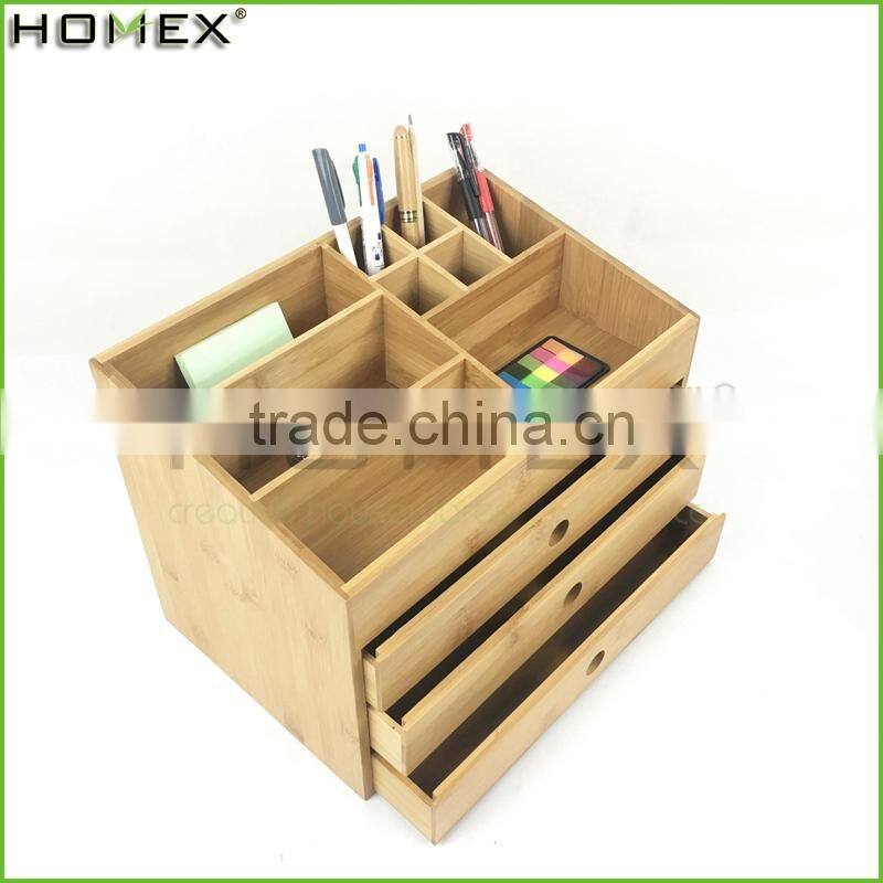 Office Bamboo Desk Organizer With 3 Drawer/Homex_FSC/BSCI Factory
