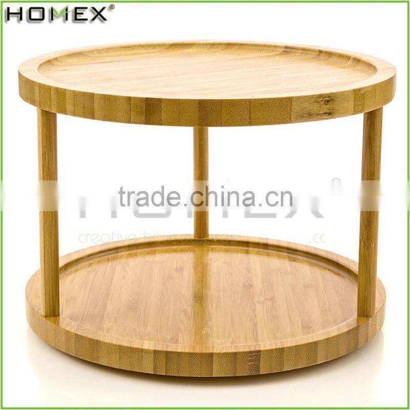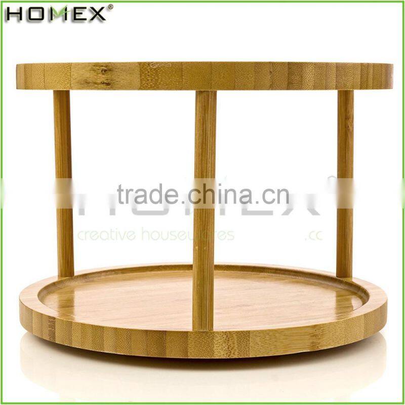 Revolving 2 Layer Turning Shelf Bamboo Spice Rack/Homex_FSC/BSCI Factory