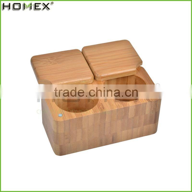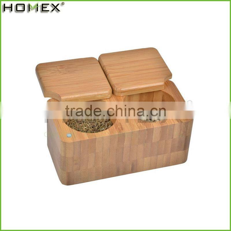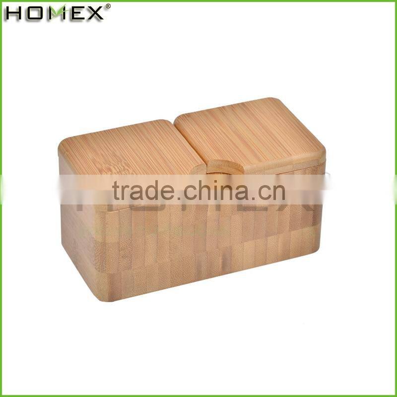 Bamboo 2 Square Department Spice Salt Storage Box With Removable Rotating Magnetic Lid/Homex_Factory
