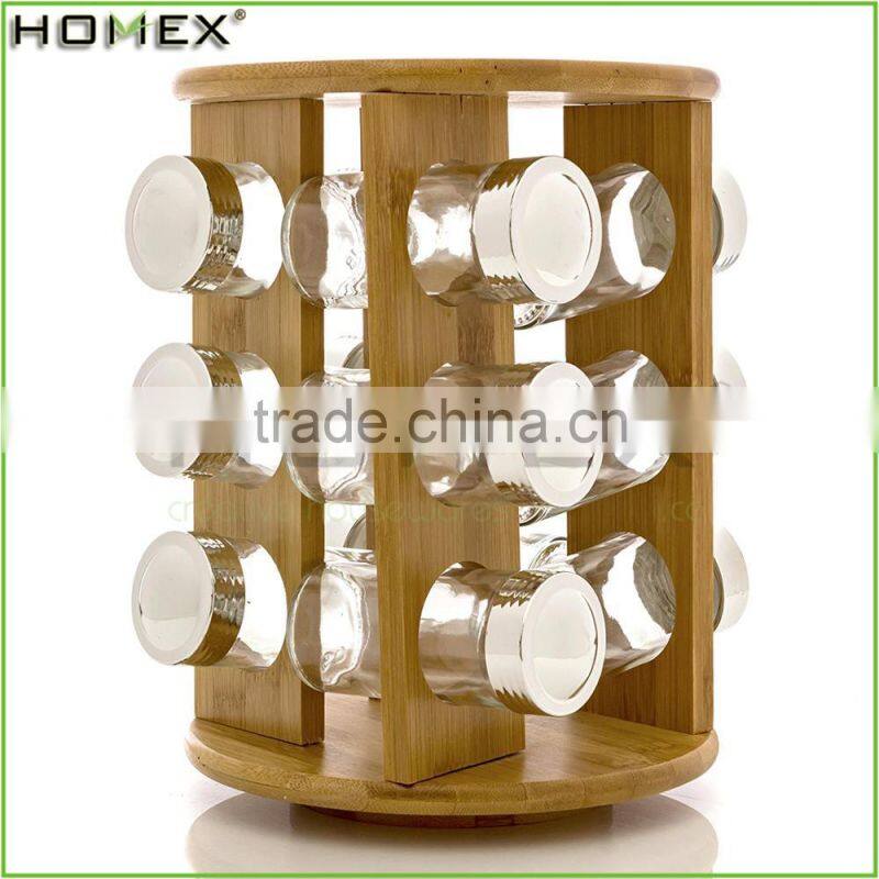 Revolving Round Top Bamboo Spice Rack With Spice Jars Set/Homex_FSC/BSCI Factory