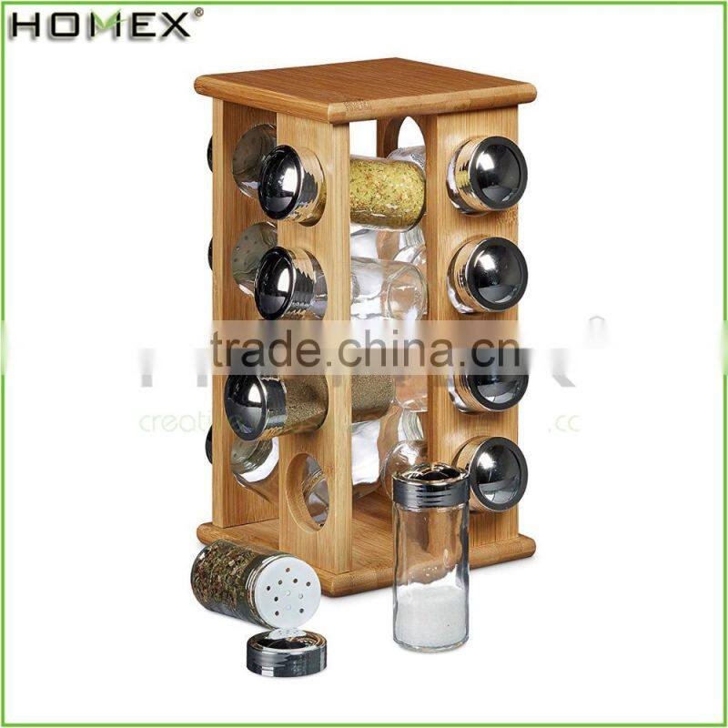 Revolving Bamboo Spice Rack 16 Spice Jar Organizer/Homex_FSC/BSCI Factory