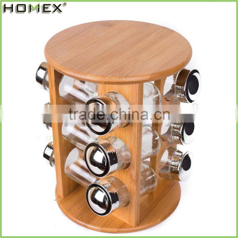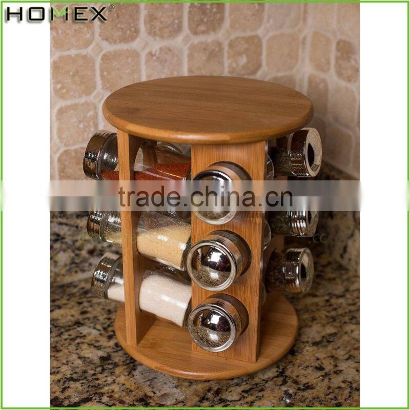 Revolving Spice Rack with 12 Spice Jar Set/Bamboo Spice Bottle Rack/Homex_FSC/BSCI Factory