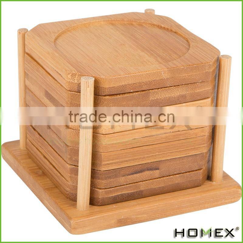 Natural Bamboo Coaster with Poles Holder Homex-BSCI Factory