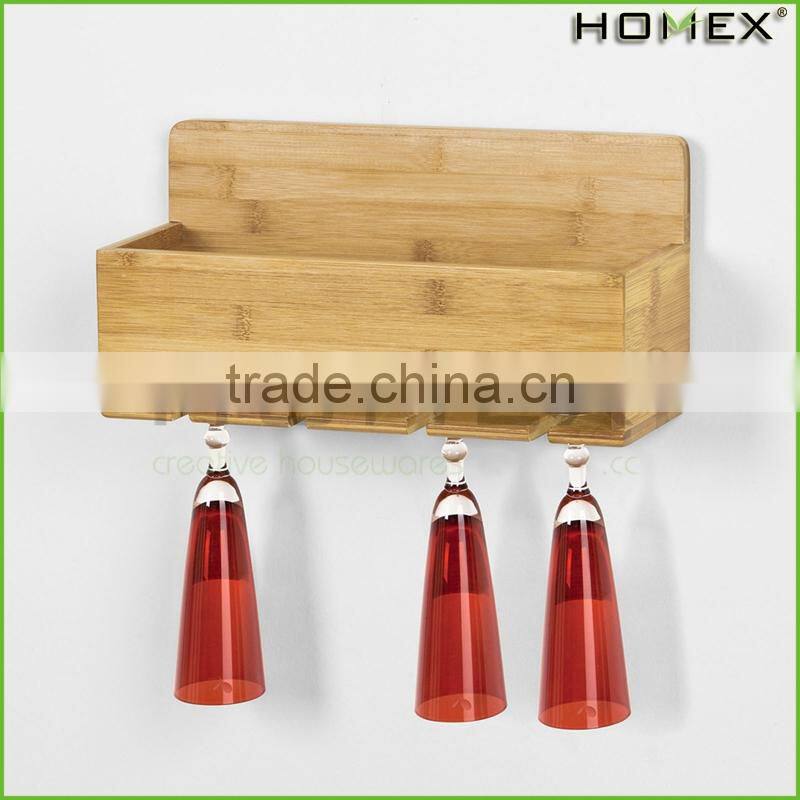 Bamboo hanging wine glass rack/ wine wall rack Homex-BSCI