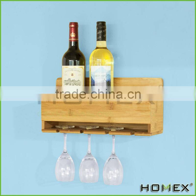 Natural bamboo wall mounted wine bottle holder Homex-BSCI