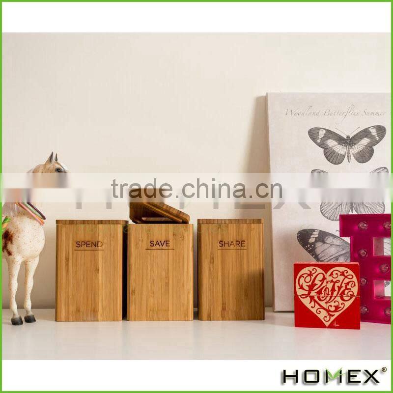 Bamboo piggy bank money saving box Homex BSCI/Factory