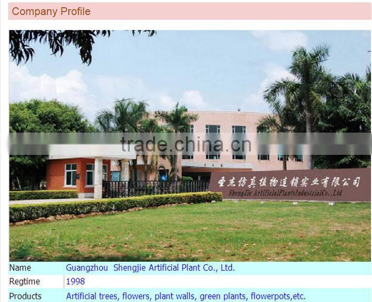 B : We are manufacturer professional in making artificial date palm tree , coconut palm tree , pine tree , cherry blossom tree , peach tree , banyan tree , grass animal topiary , all style flower , artificial plant wall , boxwood hedge ,fiberglass pot and other small decoration products .