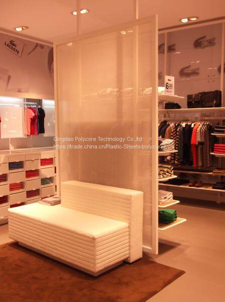 Polycore optical panel apply into exterior decoration , interior decoration and special project, such as stands, fairs, fashion show, convert, exhibitions, TV Sets, theater, set design, hotel ,KTV, restaurant, Disco, SPA, Wellness, GYM, bar, chamber, club, panel wall, screen, partition, countertops, ceiling, lounge bar , office, shop fittings, private house, door and so on. It's one kind of newest advertisement and decoration panel.