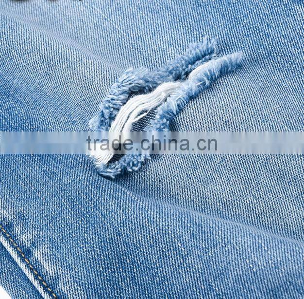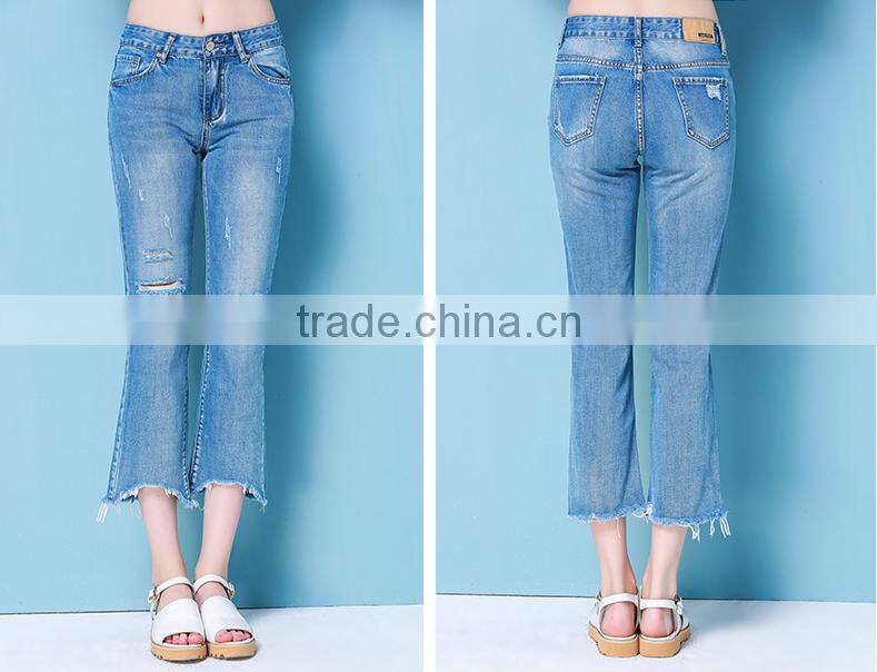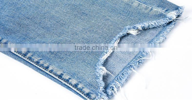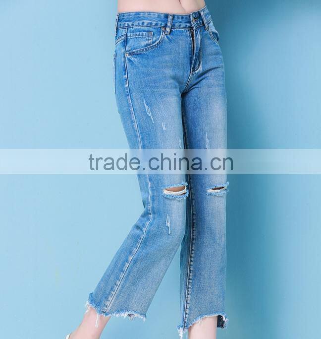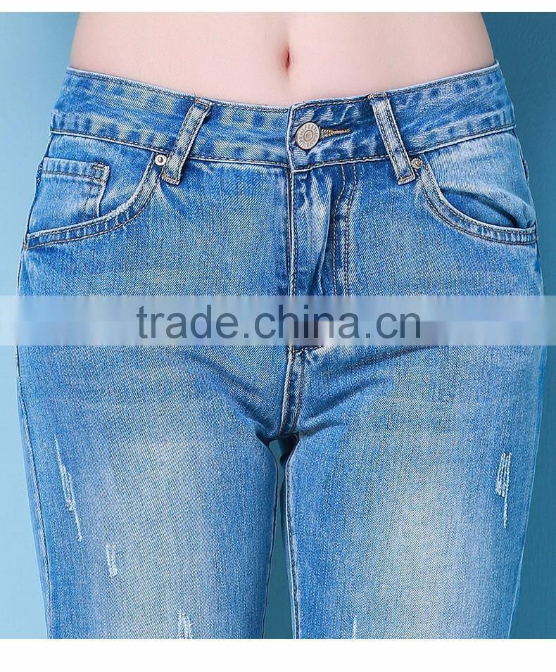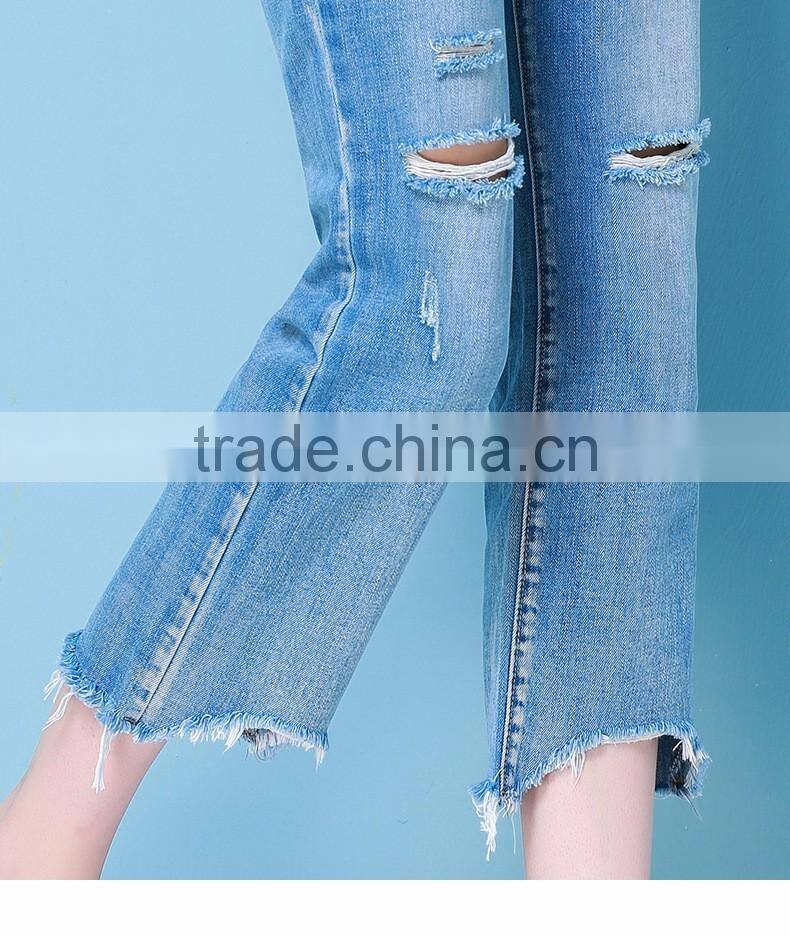 2017 latest jeans tops girls light blue wash ripped jeans for women