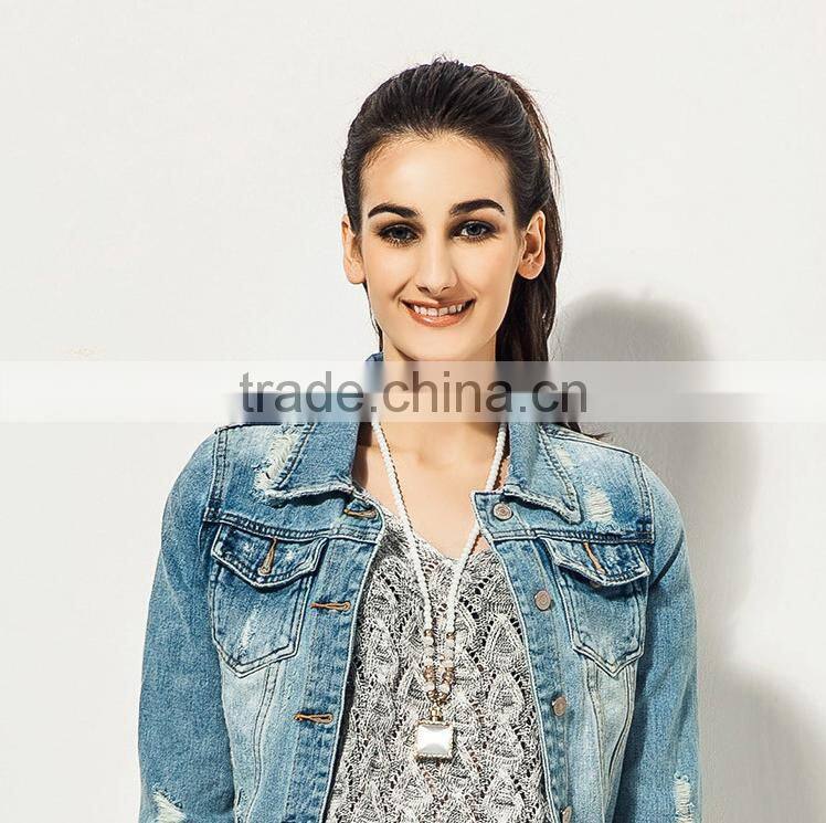 China factory supply ripped denim jacket women for distress denim jacket customization