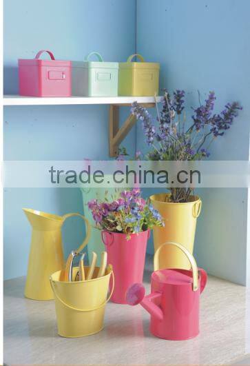 Wire Handle Colorful Powder Coating Metal Flower Double Nursery Pots