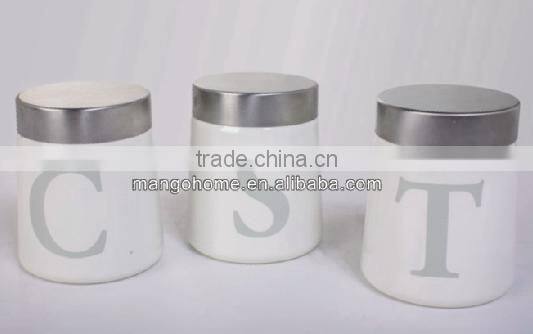 White Kitchen Metal Tea Coffee Sugar Canister Set
