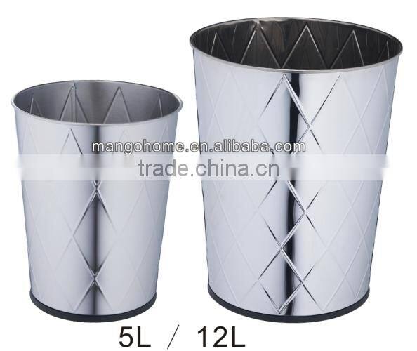 | Description: | Embossed Diamond Pattern Open Top Stainless Steel Garbage Can |