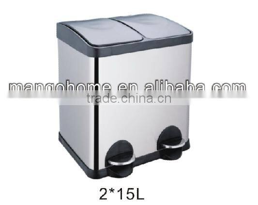 Foot Pedal Stainless Steel 2 compartment trash bin