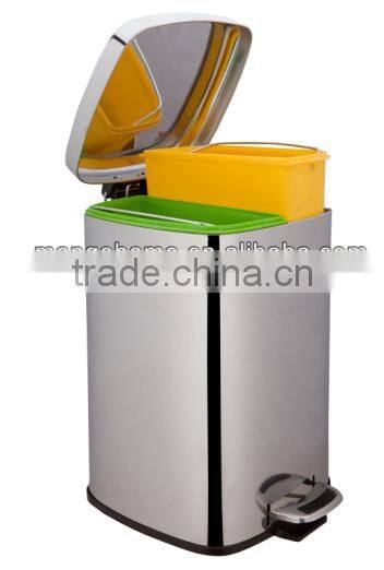 Foot Pedal Two Compartments stainless steel recycle bin