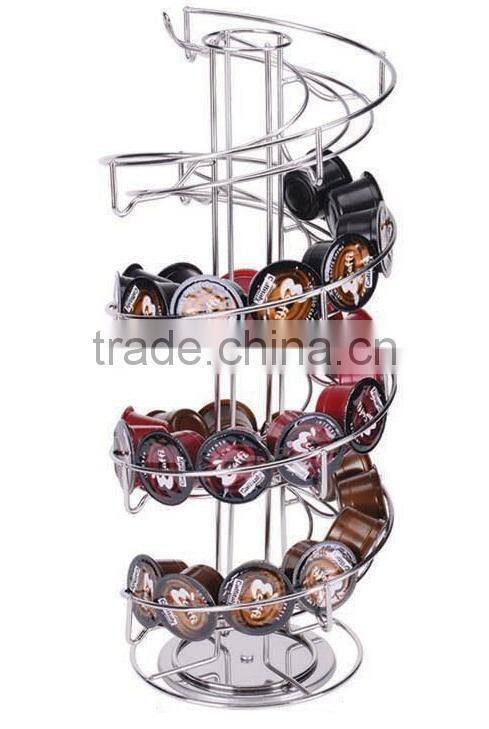 Handy space saving idea for keeping your coffee capsules organised and is a great looking additional that will look great on your kitchen worktop. Made of strong steel, very sturdy and looks high quality . With its 360 degrees swivel base, it will allow you to turn around the stand giving you convenient access to your other pods without lifting it round. For those who use a coffee machines a often, you will appreciate this handy and neat idea..