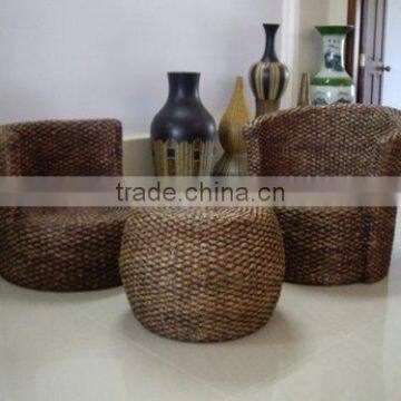 made from water-hyacinth with glass and wooden