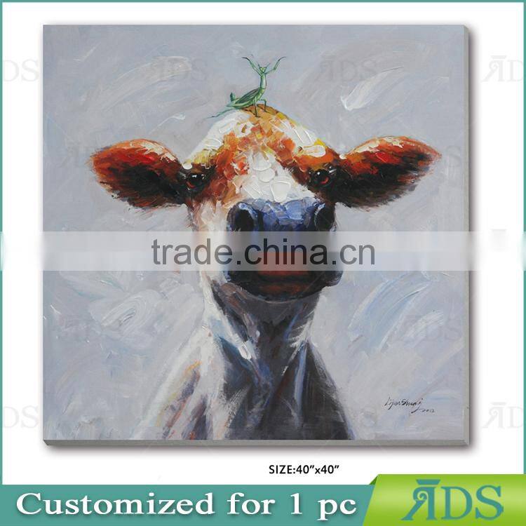 2017 Amazon Hotsell 100% Hand Animal Oil Painting Brown Cow With Stretched Frame Contemporary Artwork Ready to Hang 24 x 36 Inch
