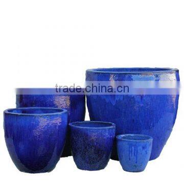 Vietnam Egg Glazed Ceramic Planters in Cobalt Color