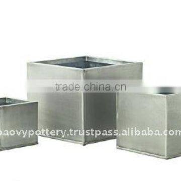 Lovely design metal planter with natural colour or painted colour,excellent for household use and graden decoration.The clean lines of these contemporary planters contrast well against the soft contours of box balls, bamboos and grasses. Alternatively set off their shiny surface made from steel, electroplated with titanium coloured zinc galvanising, these planters come with a central drainage hole: a bung is supplied, but we can’t guarantee that the planters will always be 100% watertight. They are lightweight and easy to move and will age outdoors over time