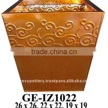 Lovely design metal planter with natural colour or painted colour,excellent for household use and graden decoration.The clean lines of these contemporary planters contrast well against the soft contours of box balls, bamboos and grasses. Alternatively set off their shiny surface made from steel, electroplated with titanium coloured zinc galvanising, these planters come with a central drainage hole: a bung is supplied, but we can’t guarantee that the planters will always be 100% watertight. They are lightweight and easy to move and will age outdoors over time