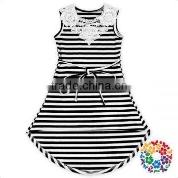 Fashion Design Black Stripe Cotton Summer Dress Sleeveless Adding Lace Girl Child Dress