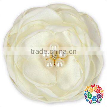 Ivory Pearls Center Satin Ribbon Handmade Flowers