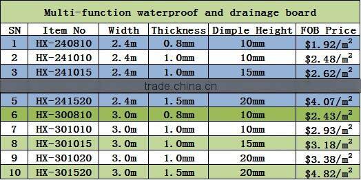 dimple drain board1. 8mm 12mm 16mm and 20mm height