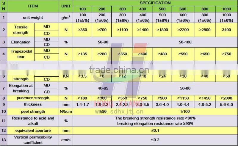 Specification of PET short fiber nonwoven needle punched geotextiles