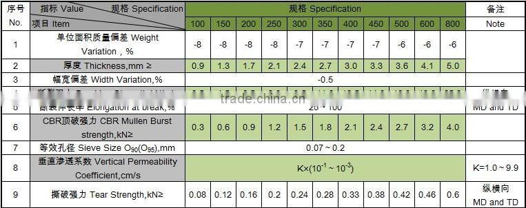 (1) Mass per unit:100g/m2~1500g/m2