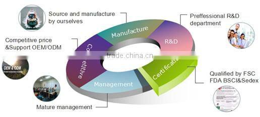 We already have FSC, FDA, BSCI & Sedex, we are now doing our best to make products much nicer and more popular. So please come to us if you have any ideas, we will not make you down.