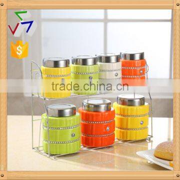 | DESC | 7pcs ceramic canister with stainless steel stand |