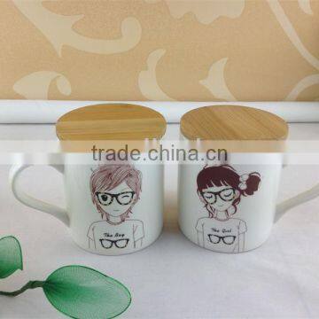 Ceramic Couple Mugs With Wooden Lid