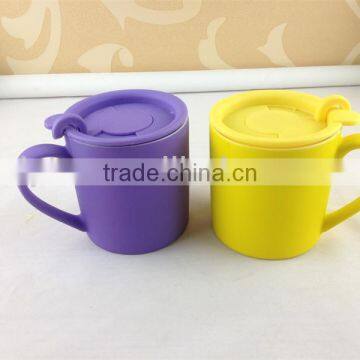 Ceramic Plain Color Mug Cup With Airtight Plastic Lid