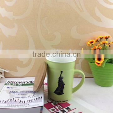 ceramic mug with wood cover