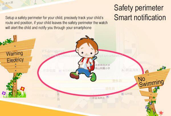 Electronic fence: fence can be set to alarm the guardian whenever the children enters or leaves the fence