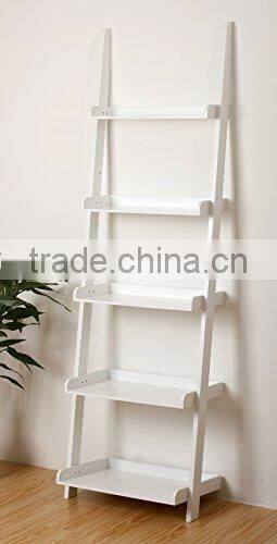 MDF Wood Display Rack High Quality 5-tier Leaning Ladder Book Shelf